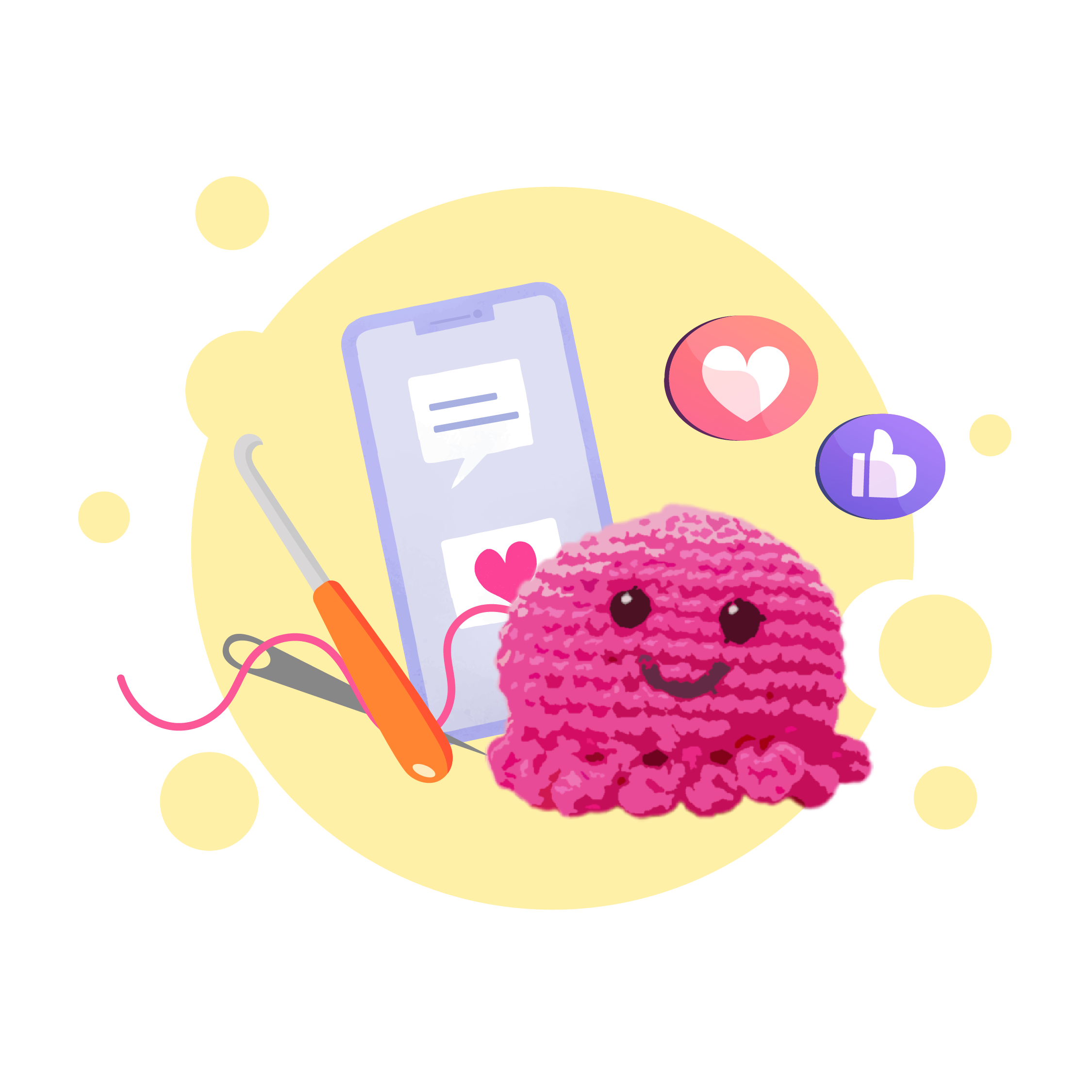 Compartilhe seus projetos com nossa comunidade de apoio para obter feedback, inspiração e diversão com crochê!